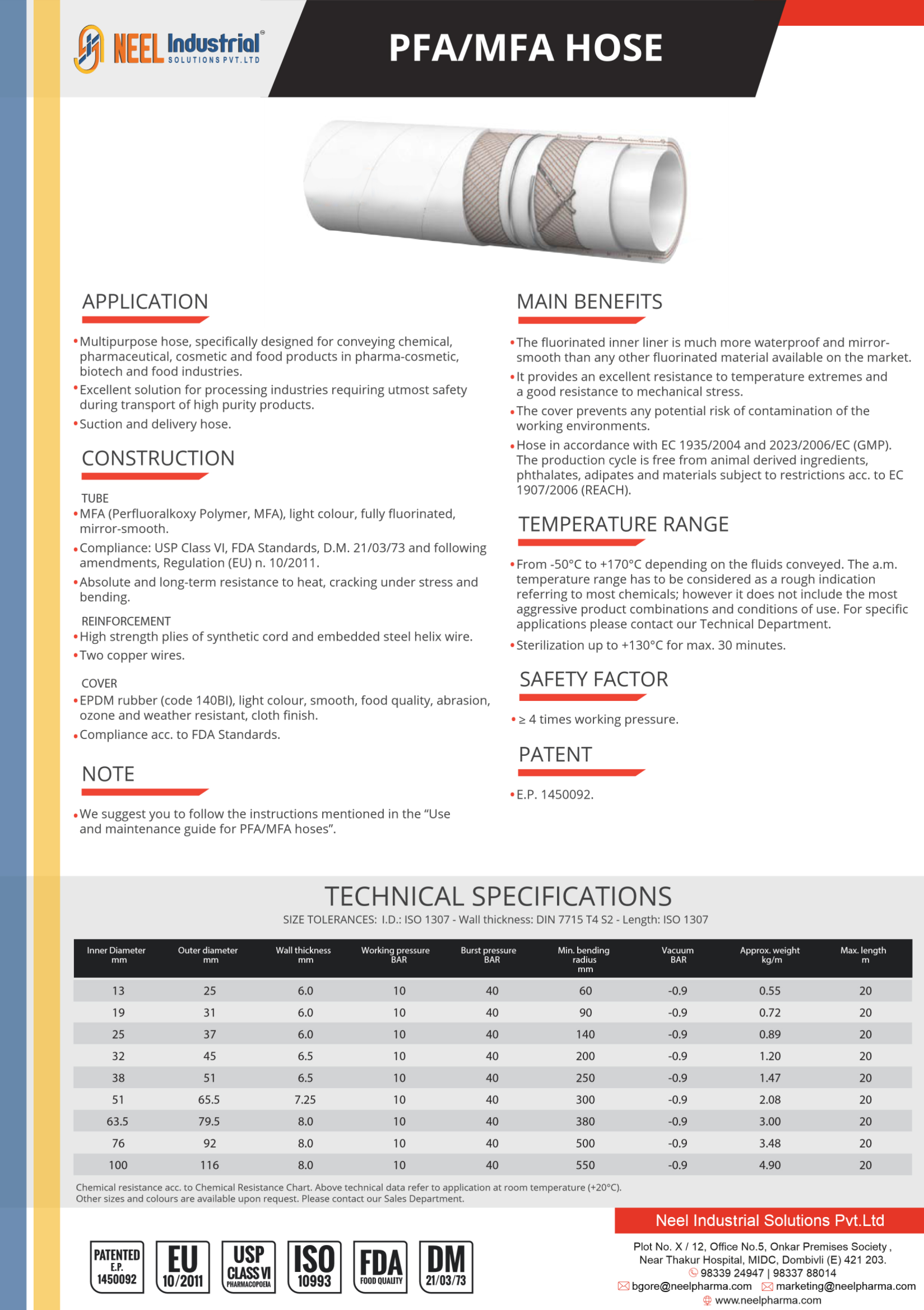 Multipurpose hose, specifically designed for conveying chemical, pharmaceutical, cosmetic and food industries. Excellent solution for processing industries required atmost safety during transport of high purity products. Suction and Delivery hose.